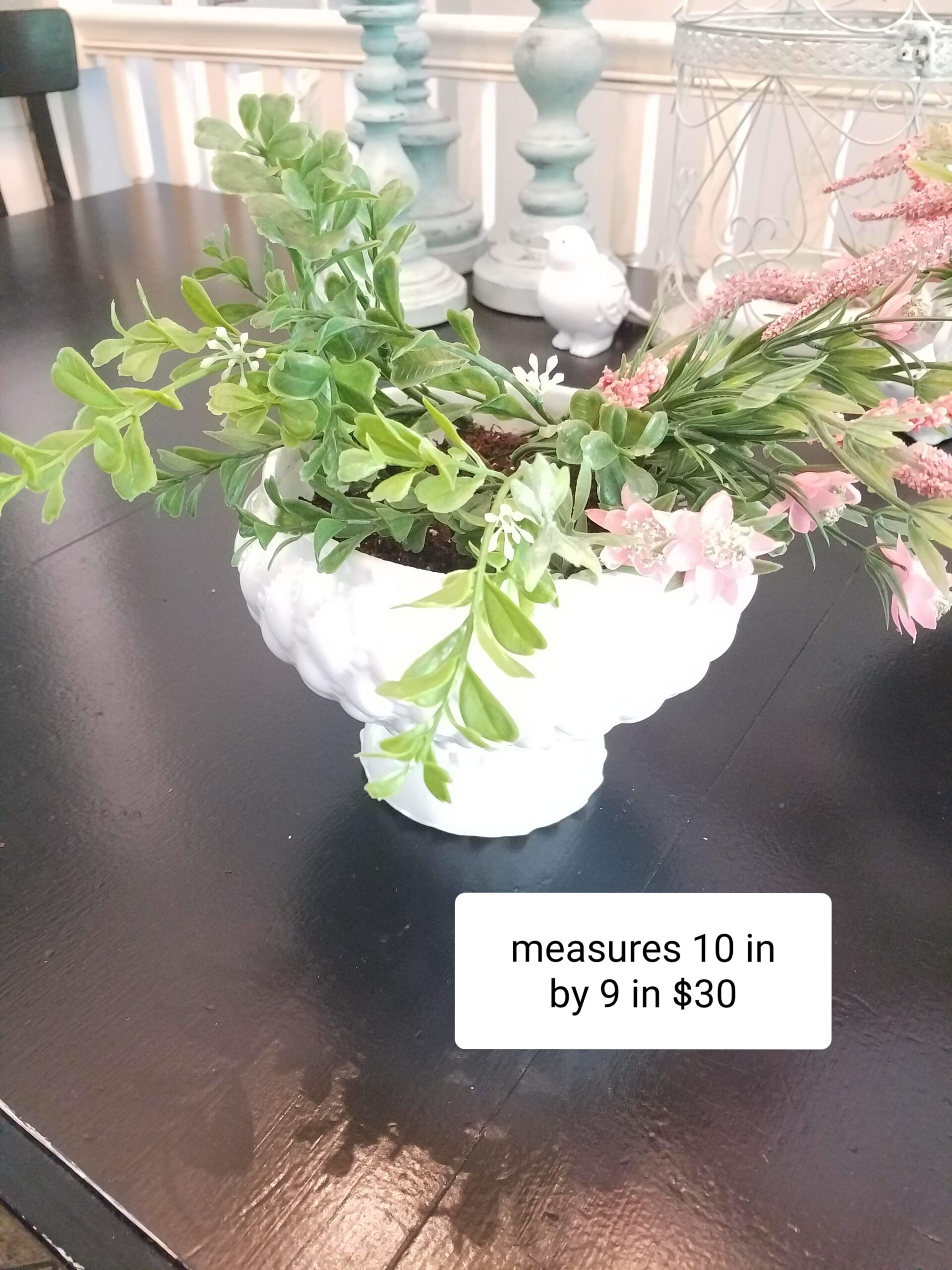 Transform your space with this one-of-a-kind arrangement of artificial pink flowers set in a beautifully repurposed white light shade!