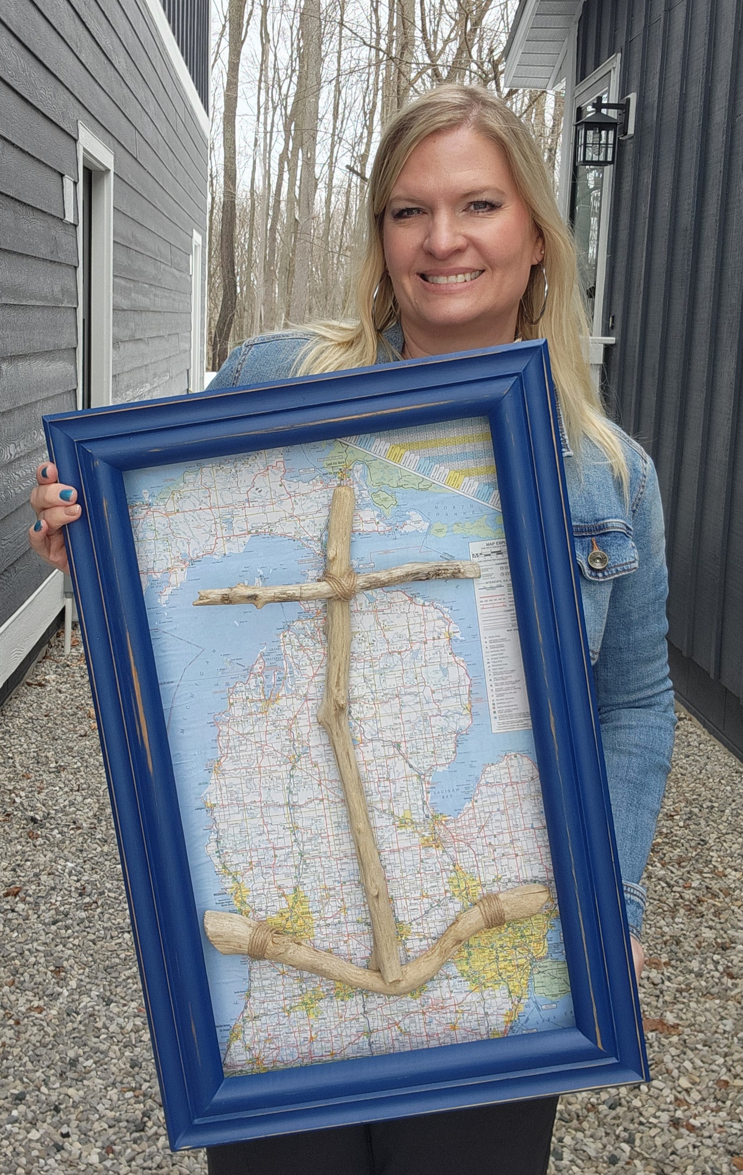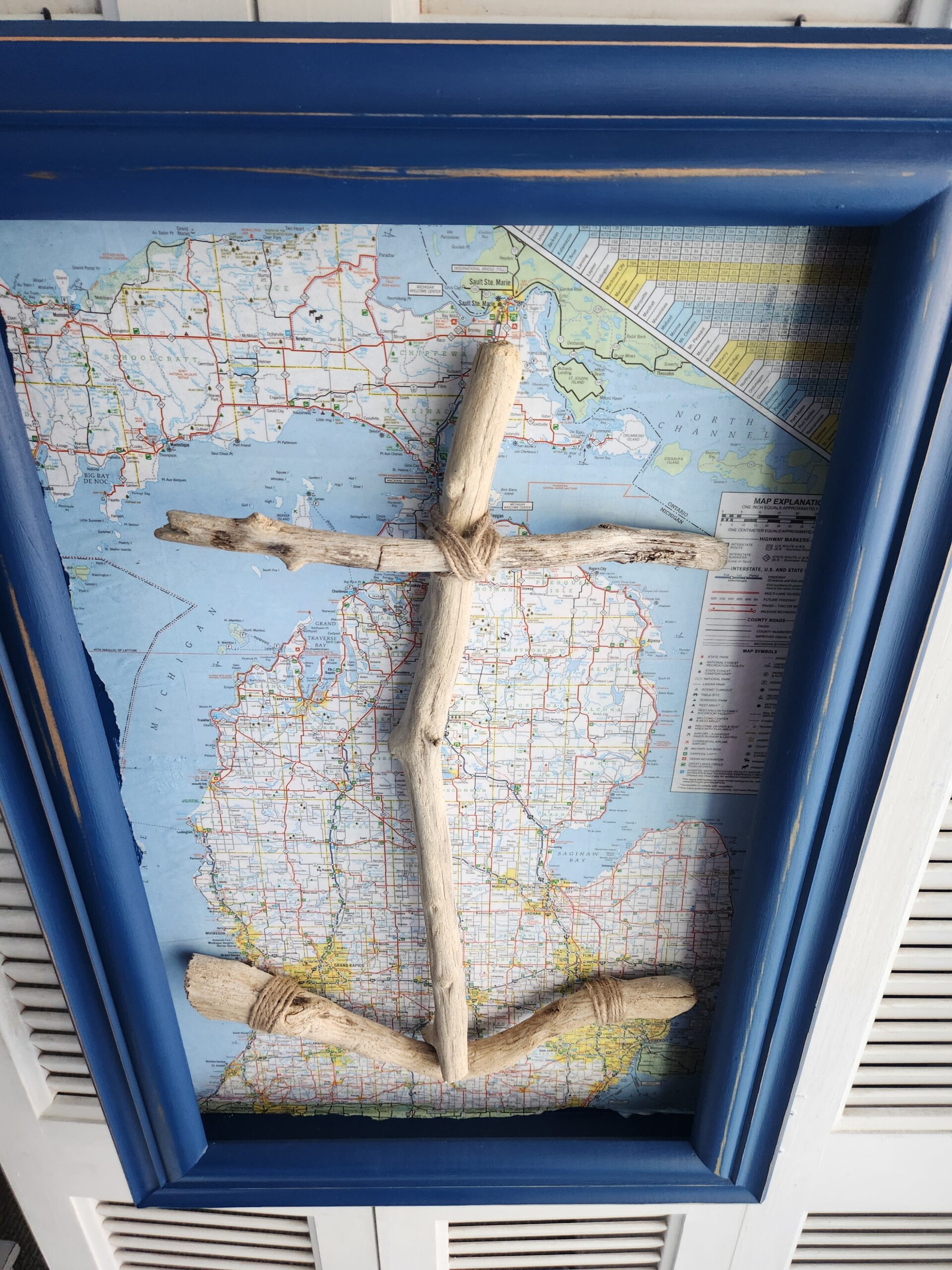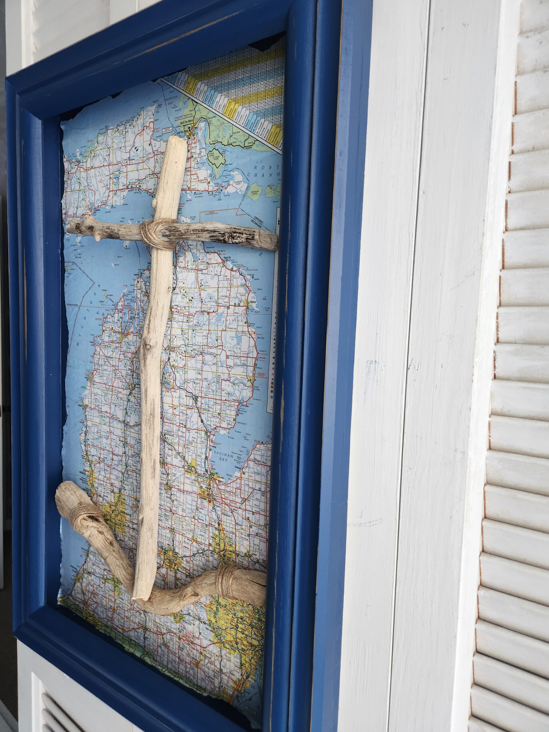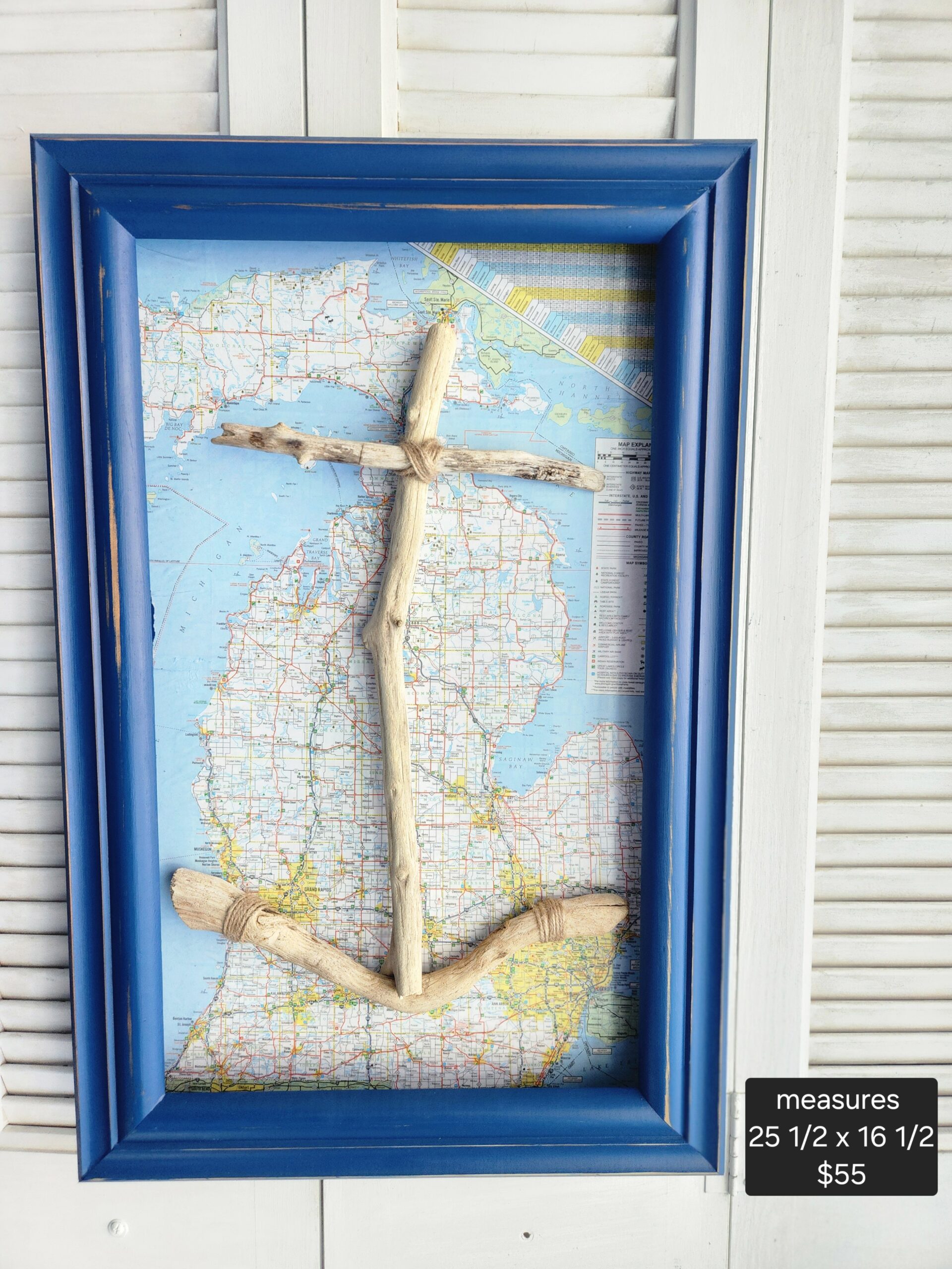 Materials: Natural Driftwood • Wood Frame • Michigan Map Backing