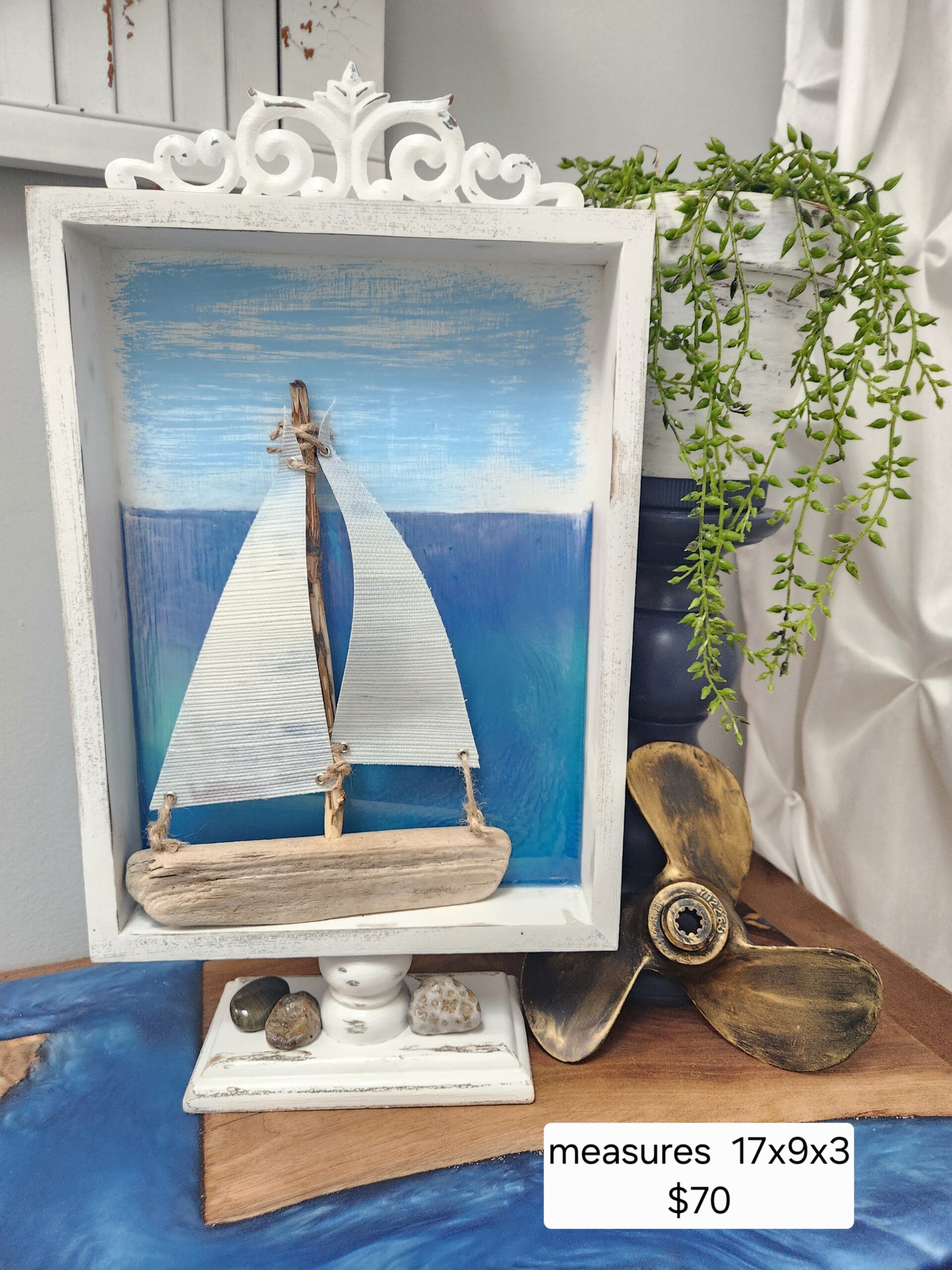 • Handmade driftwood sailboat design