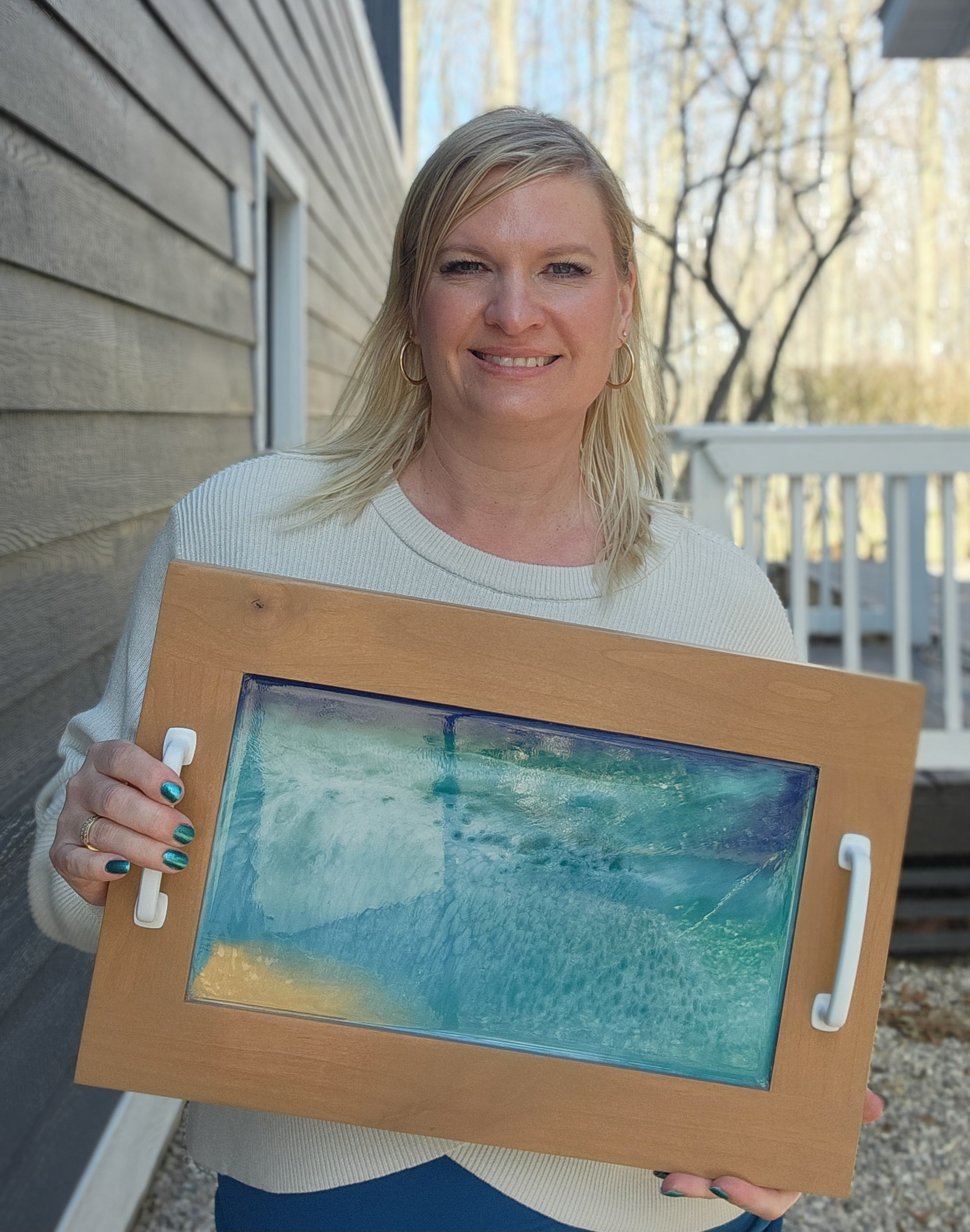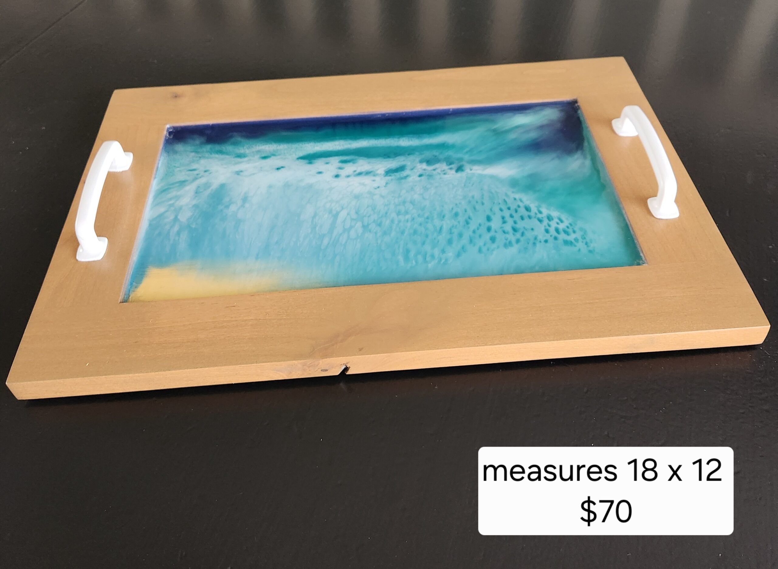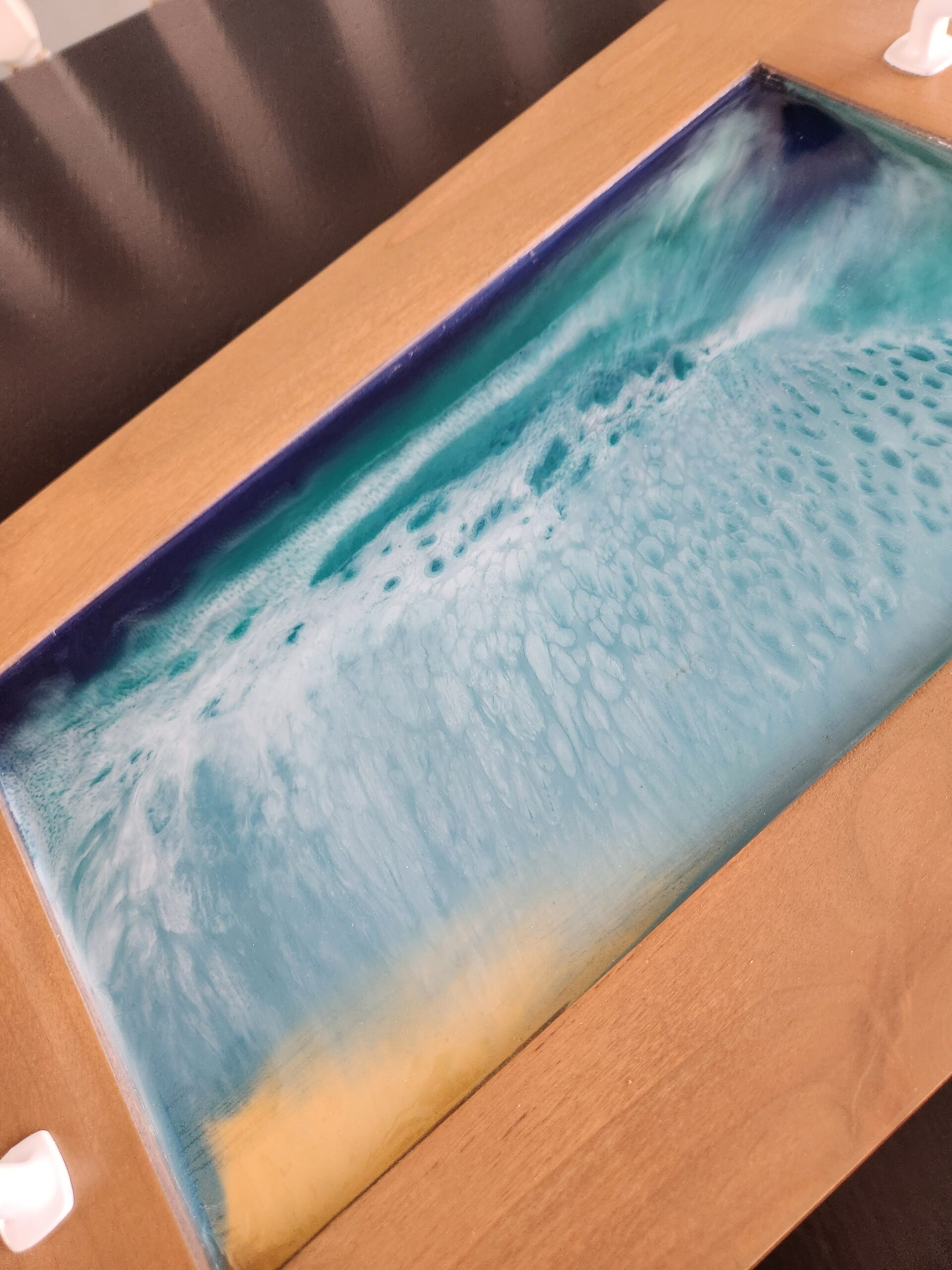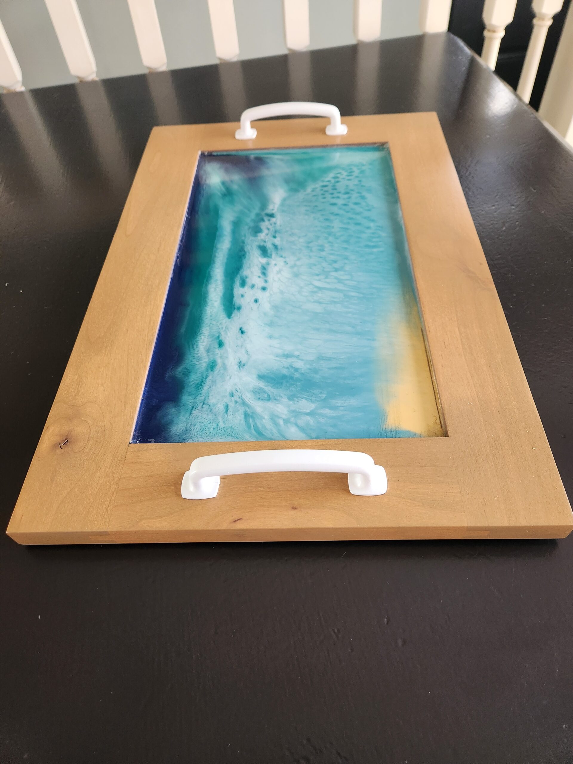 Handmade Wood & Epoxy Resin Serving Tray – Ocean Water Design – Crafted in the USA