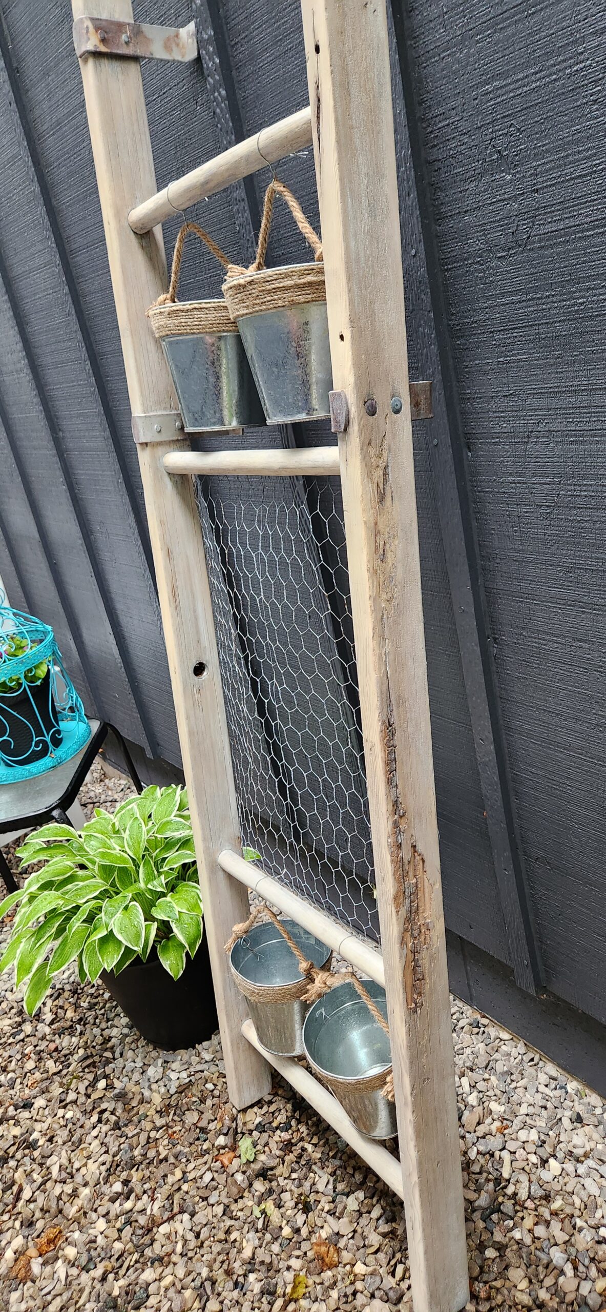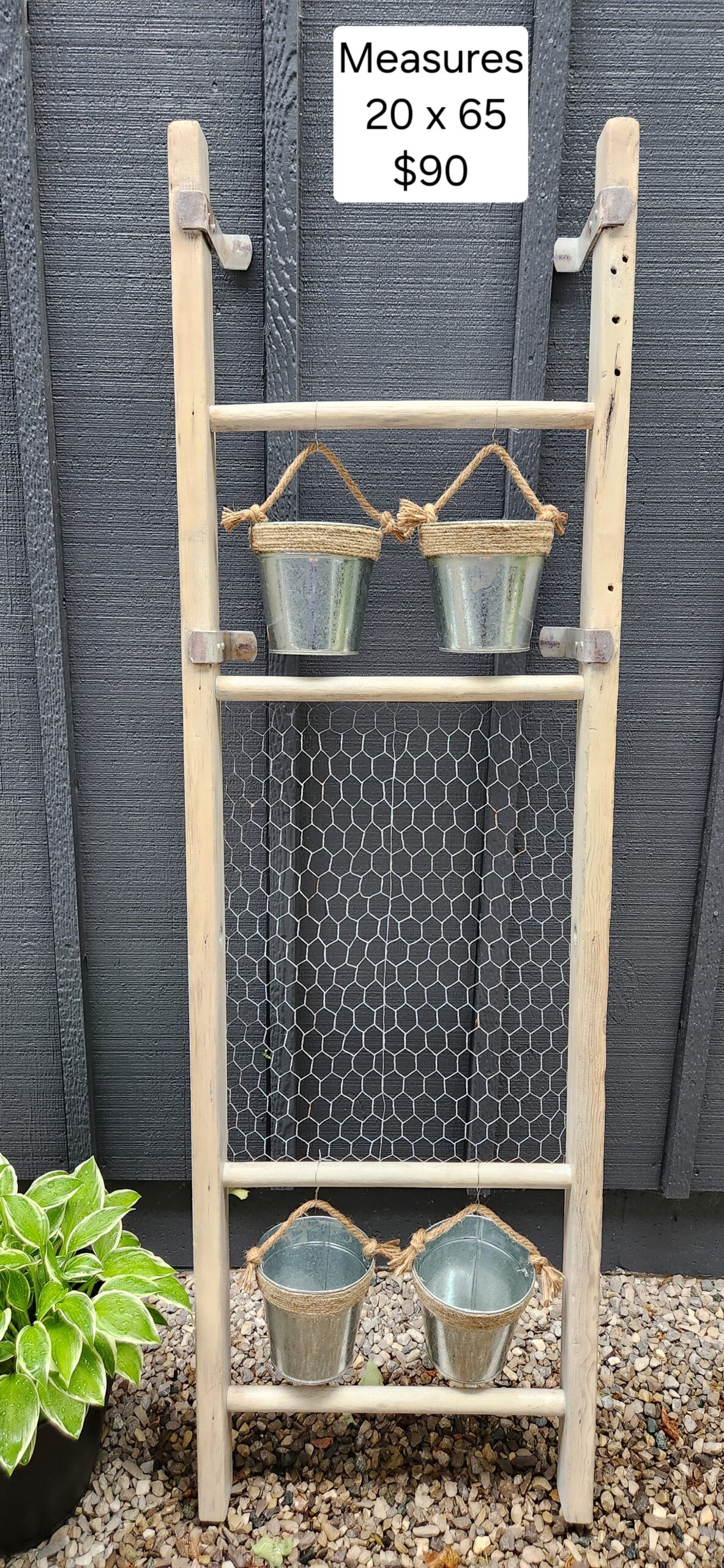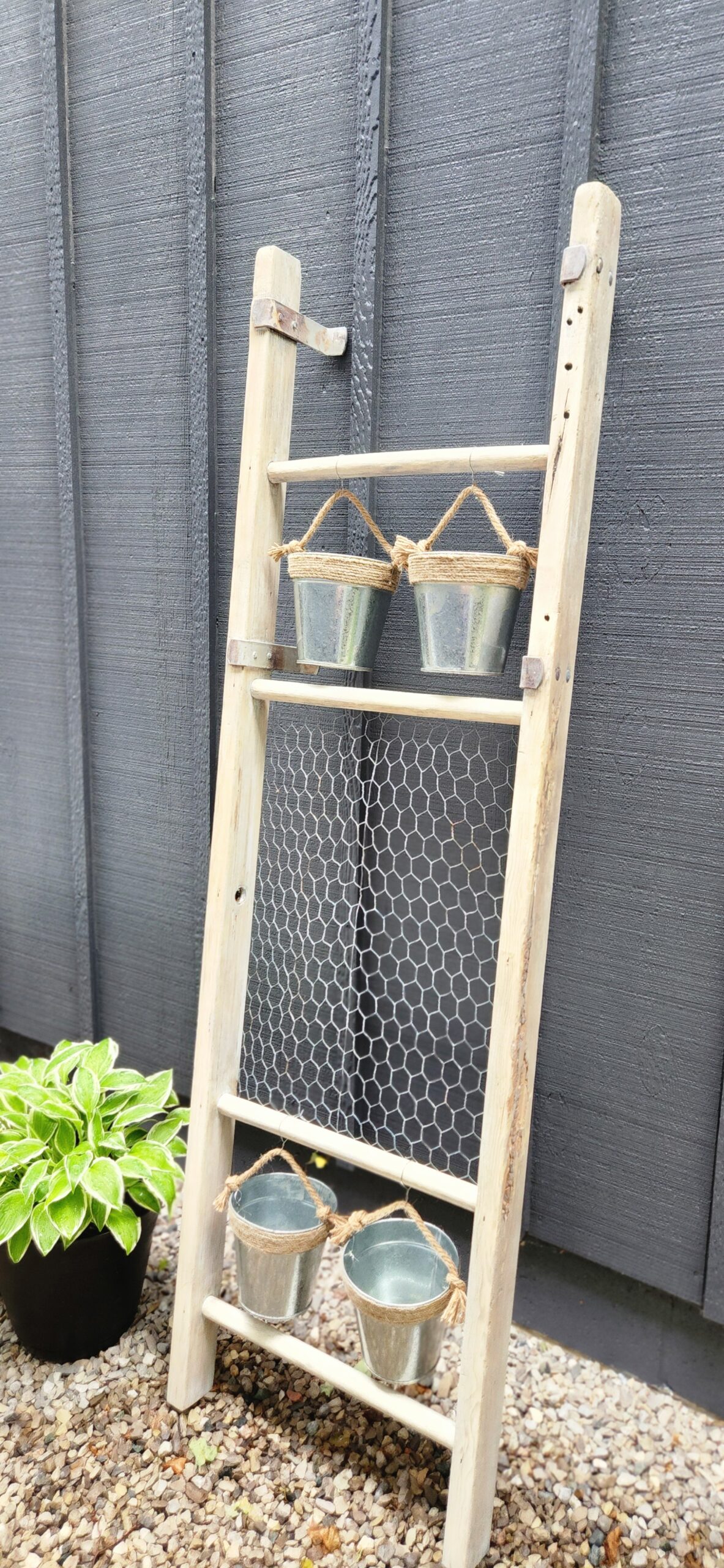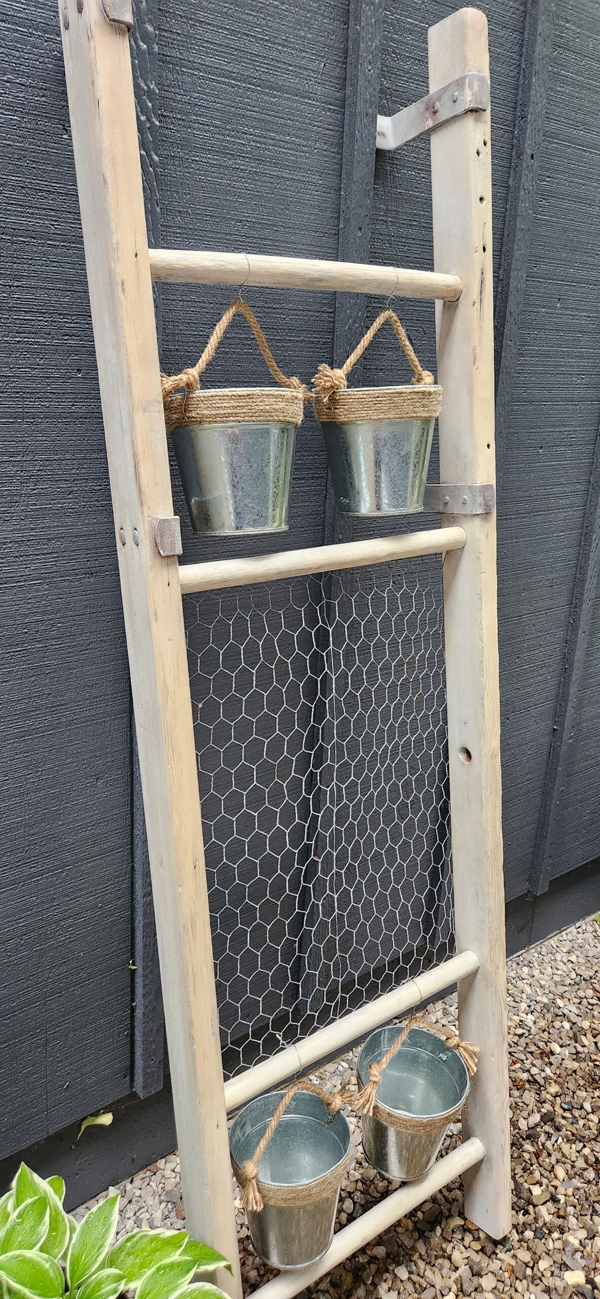 Bring a touch of nature to your home or garden with this charming solid wood ladder! 🌼 Featuring hanging flowerpots & chicken wire for climbing plants, it’s perfect for displaying your favorite blooms or greenery. Ideal for both indoor and outdoor spaces!
