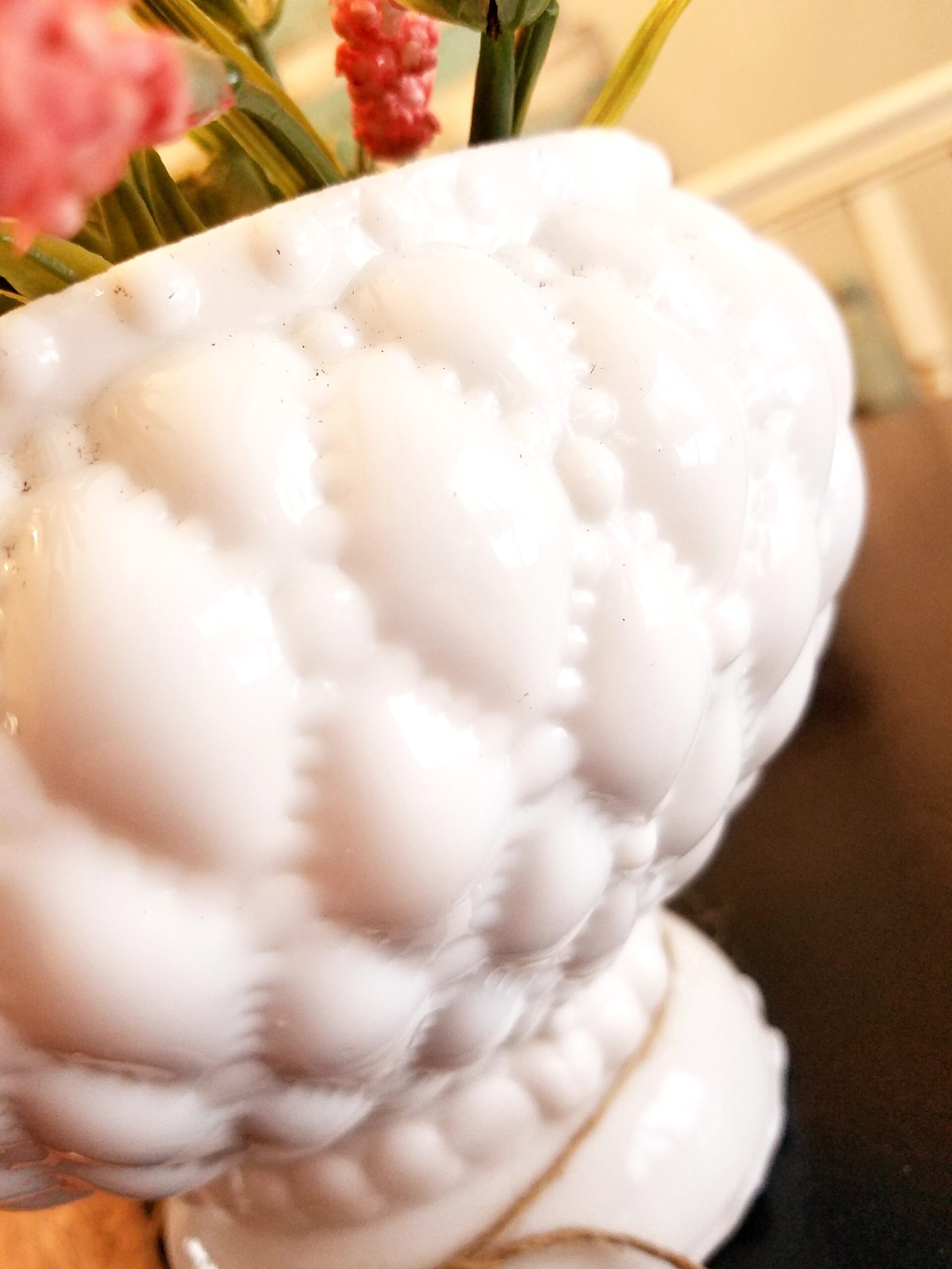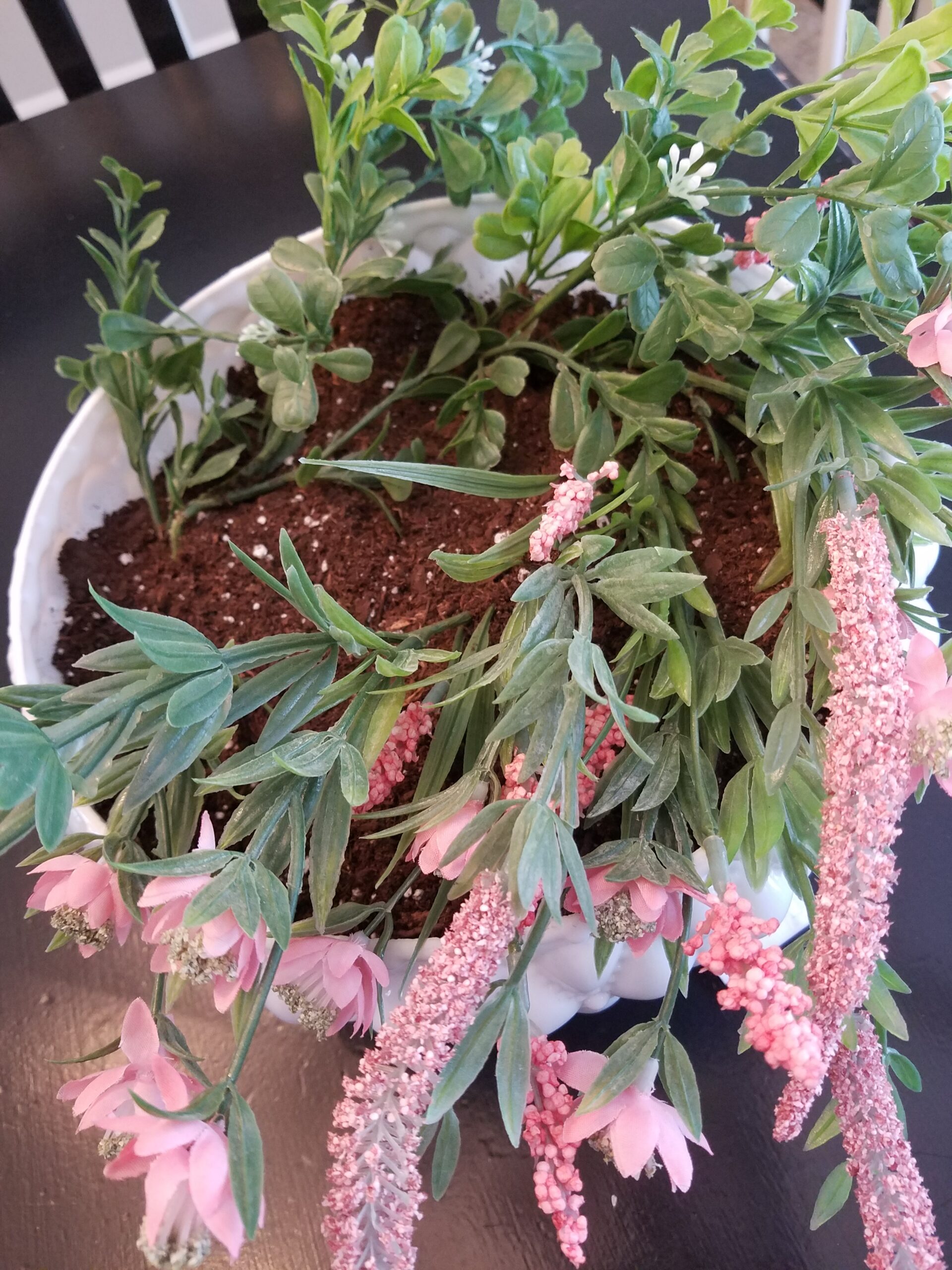 Transform your space with this one-of-a-kind arrangement of artificial pink flowers set in a beautifully repurposed white light shade!